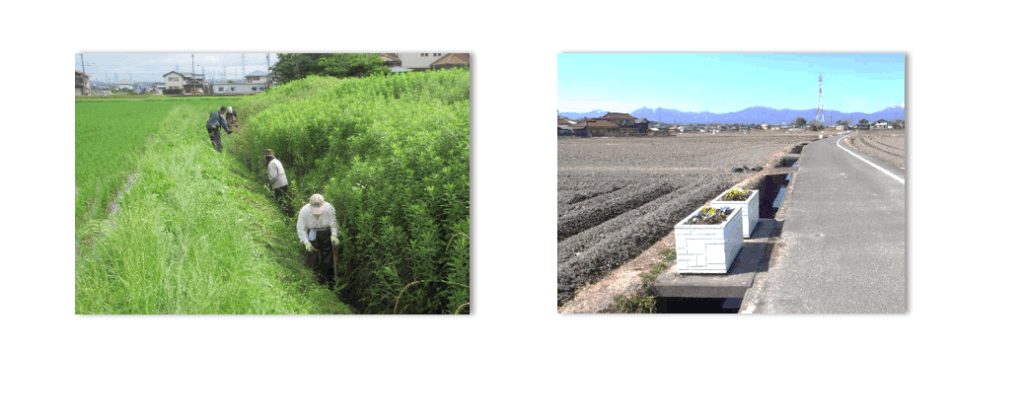 具体的には、ため池の保全、用水路・排水路の維持等の環境保全の活動を行って