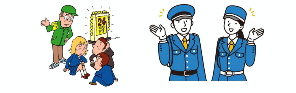 2)非行防止活動・・・飲酒、喫煙、薬物乱用などの問題行動を防ぐための補導活動を行います。