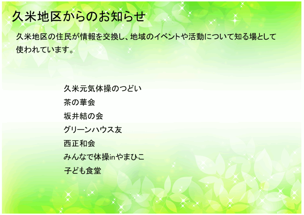 ・情報発信と広報活動地域の最新情報や、重要なお知らせを住民に